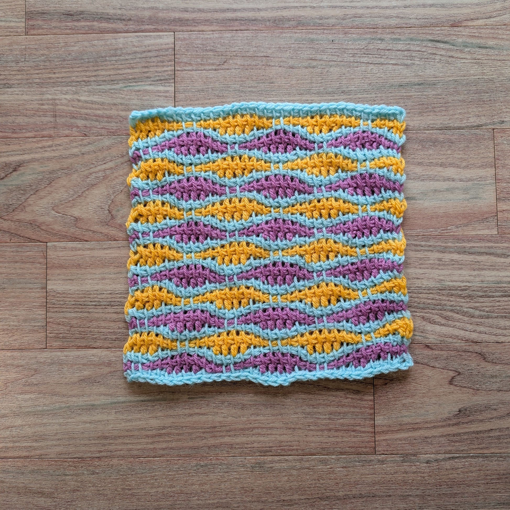 In this session, students will learn two new Tunisian crochet stitches - the slip stitch and double crochet stitch - and how to combine them to create this flowing wave pattern.